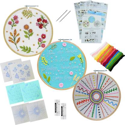 Embroiderymaterial Com Embroidery Diy Kit Combo 3new Designs 8 Tutorial Pages 6 Printed Fabrics 18 Threads All Other Materials Included 15 Type Of Stitches Embroidery Diy Kit Combo 3new Designs 8 Tutorial Pages